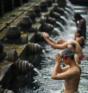 Guided by experienced Priest, our night melukat takes place at a holy spring that is believed to have strong energy to cleanse negative auras, your peaceful and balance in life. With the intimate and quiet atmosphere, you will feel a strong spiritual connection, letting the holy water carry away all burdens and replace them with peace and harmony.